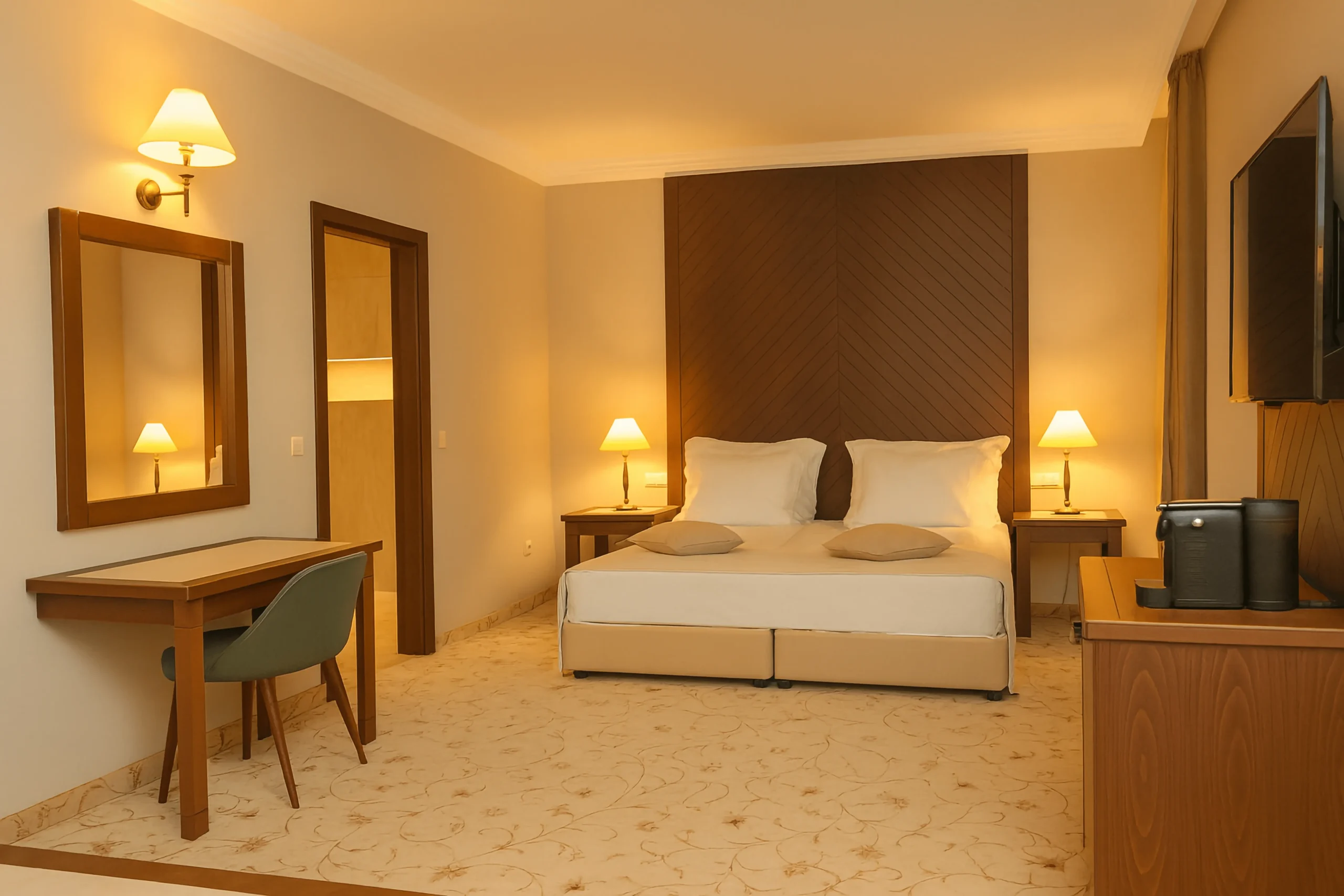 Със своите 54 кв.м, джуниър суитът предлага повече пространство, повече свобода и повече тишина. Отделната зона за отдих, меките материи и приглушената светлина създават усещане за лично пространство с характер. Подходящ за пътуване с компания или просто за още малко време само за себе си.